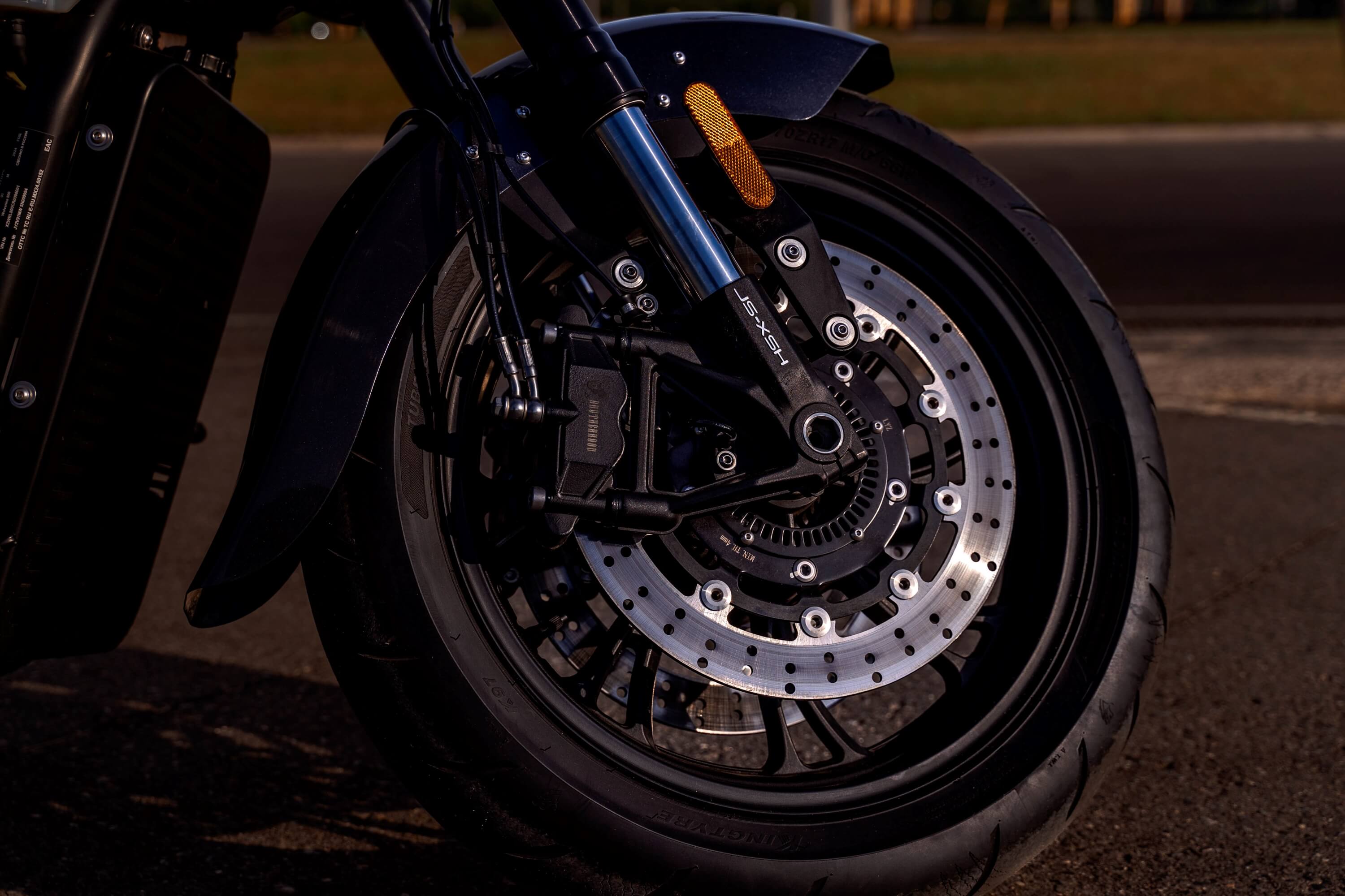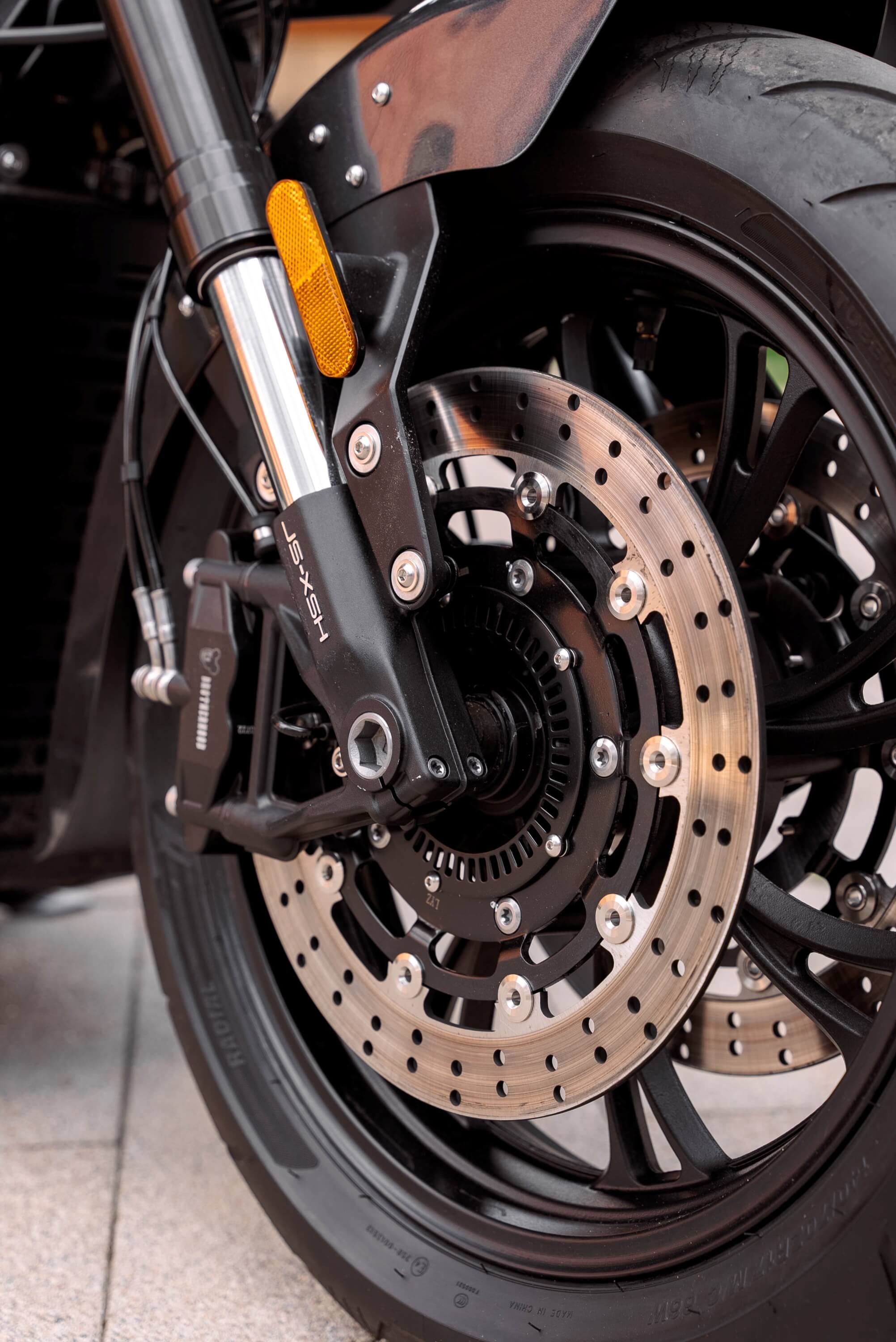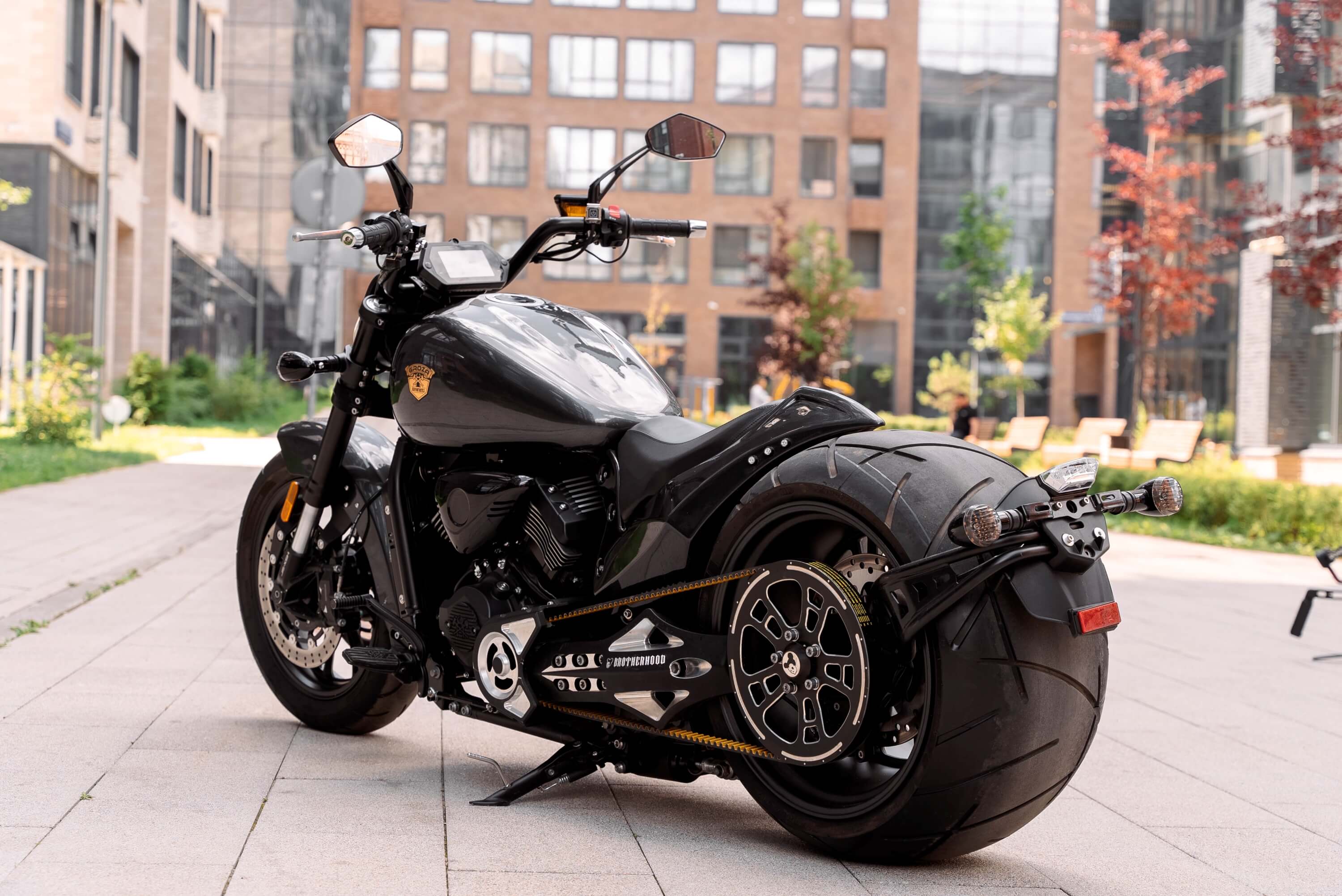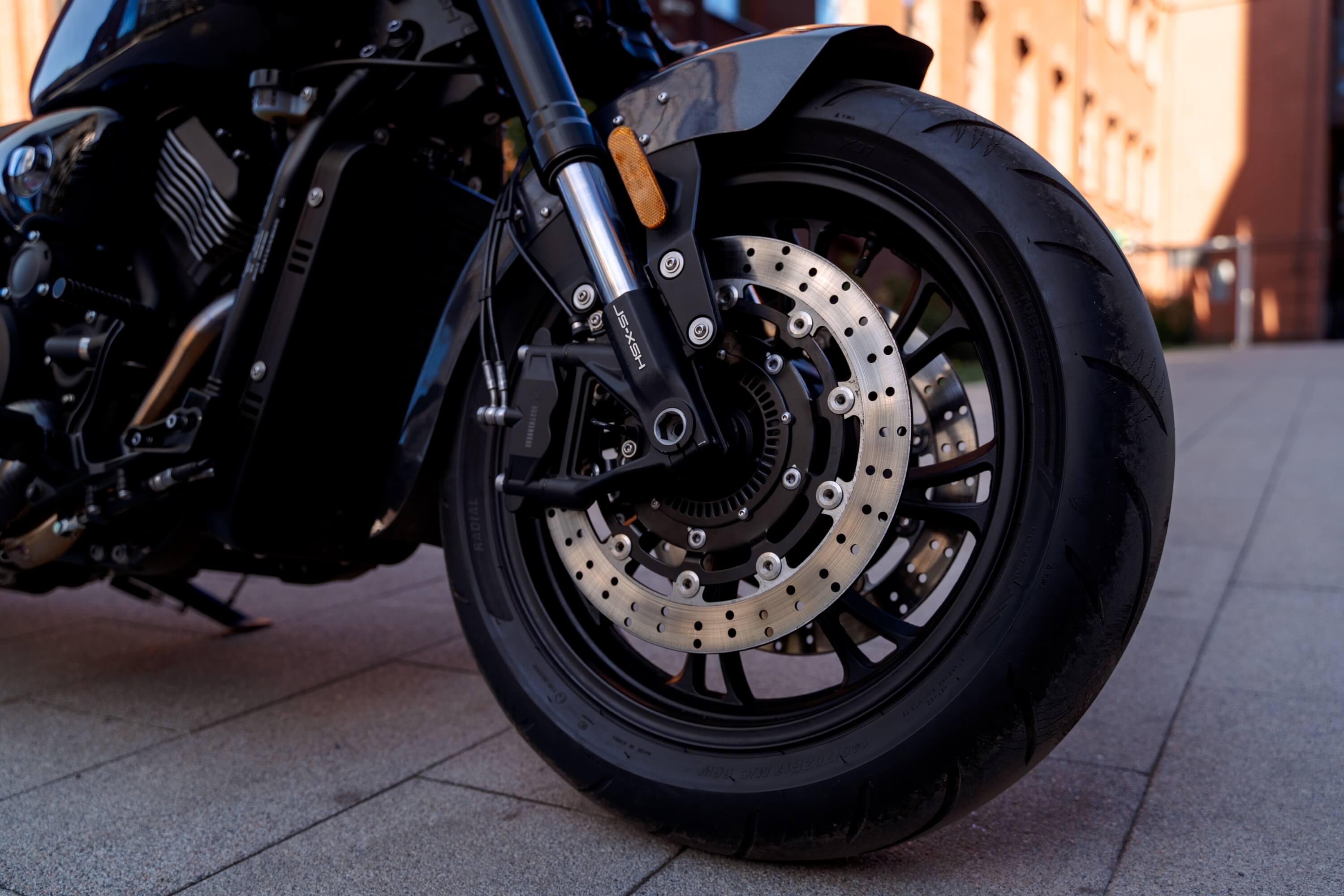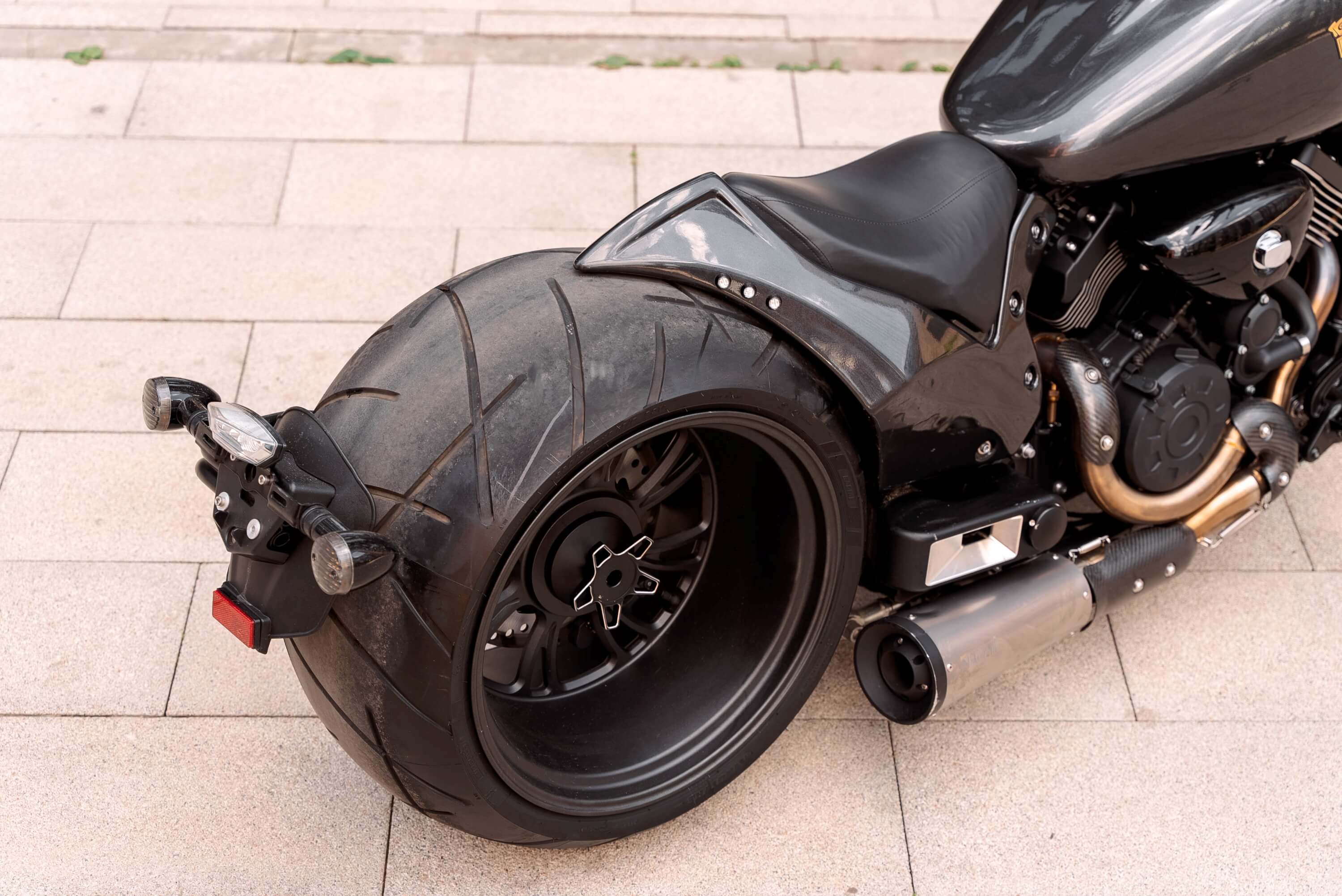 На мотоцикл установлены литые алюминиевые диски диаметром 17 дюймов спереди и 18 дюймов сзади. Ширина передней покрышки – 140 мм, а задней – рекордные 360 мм!