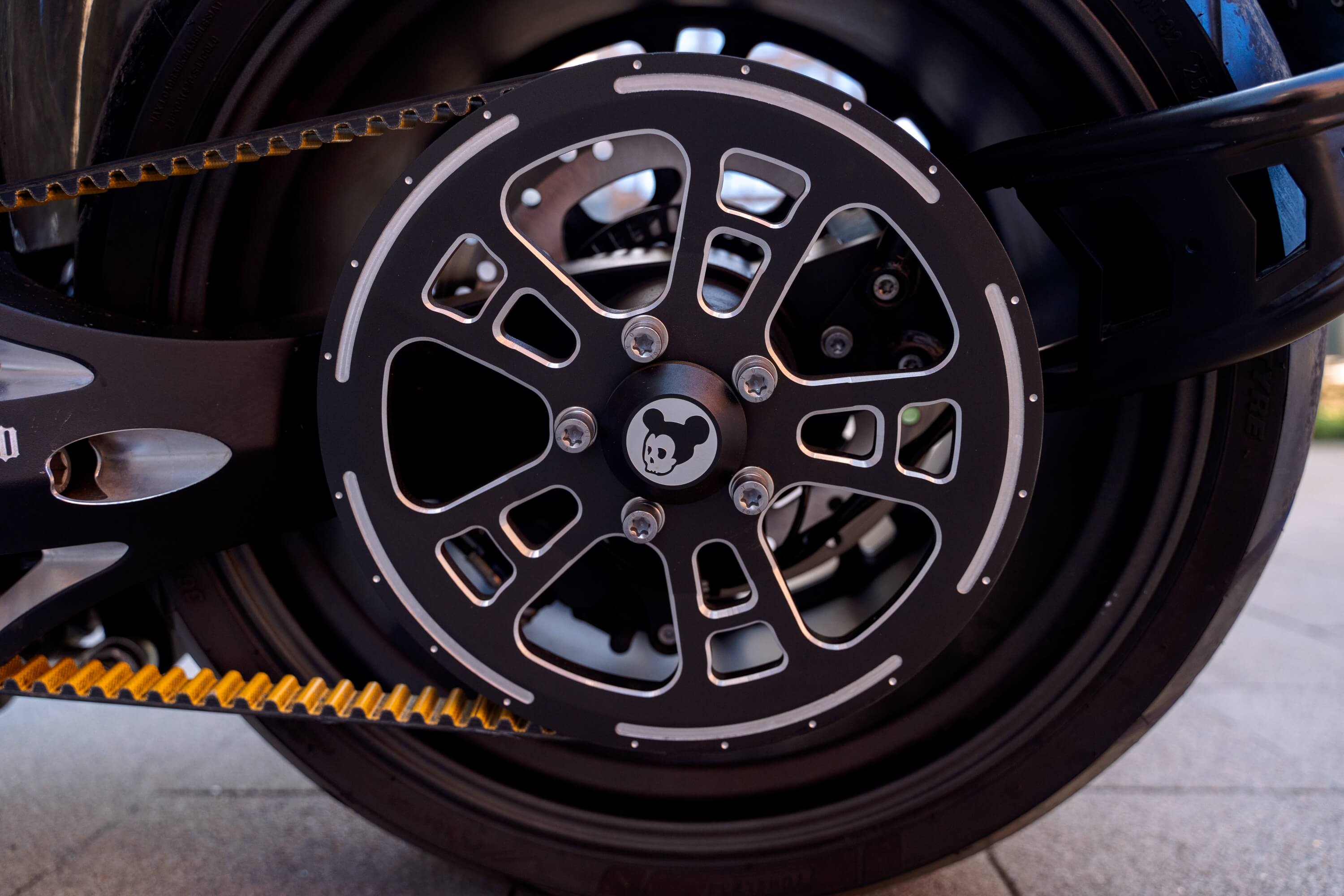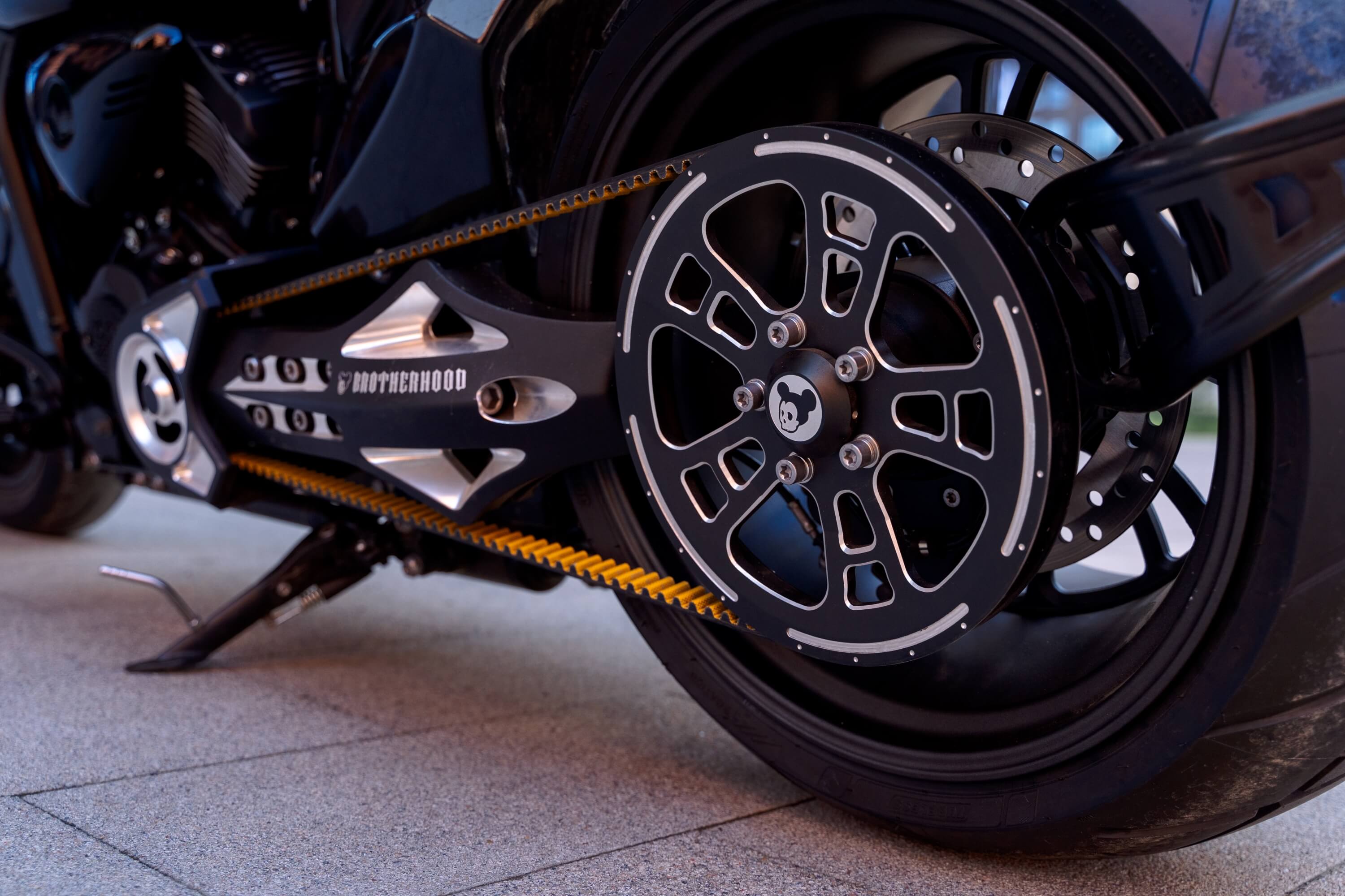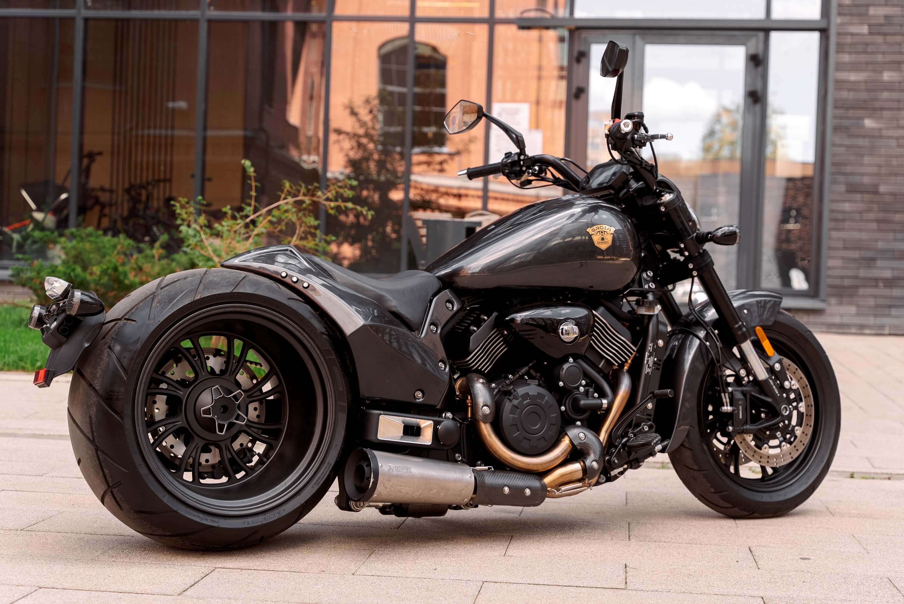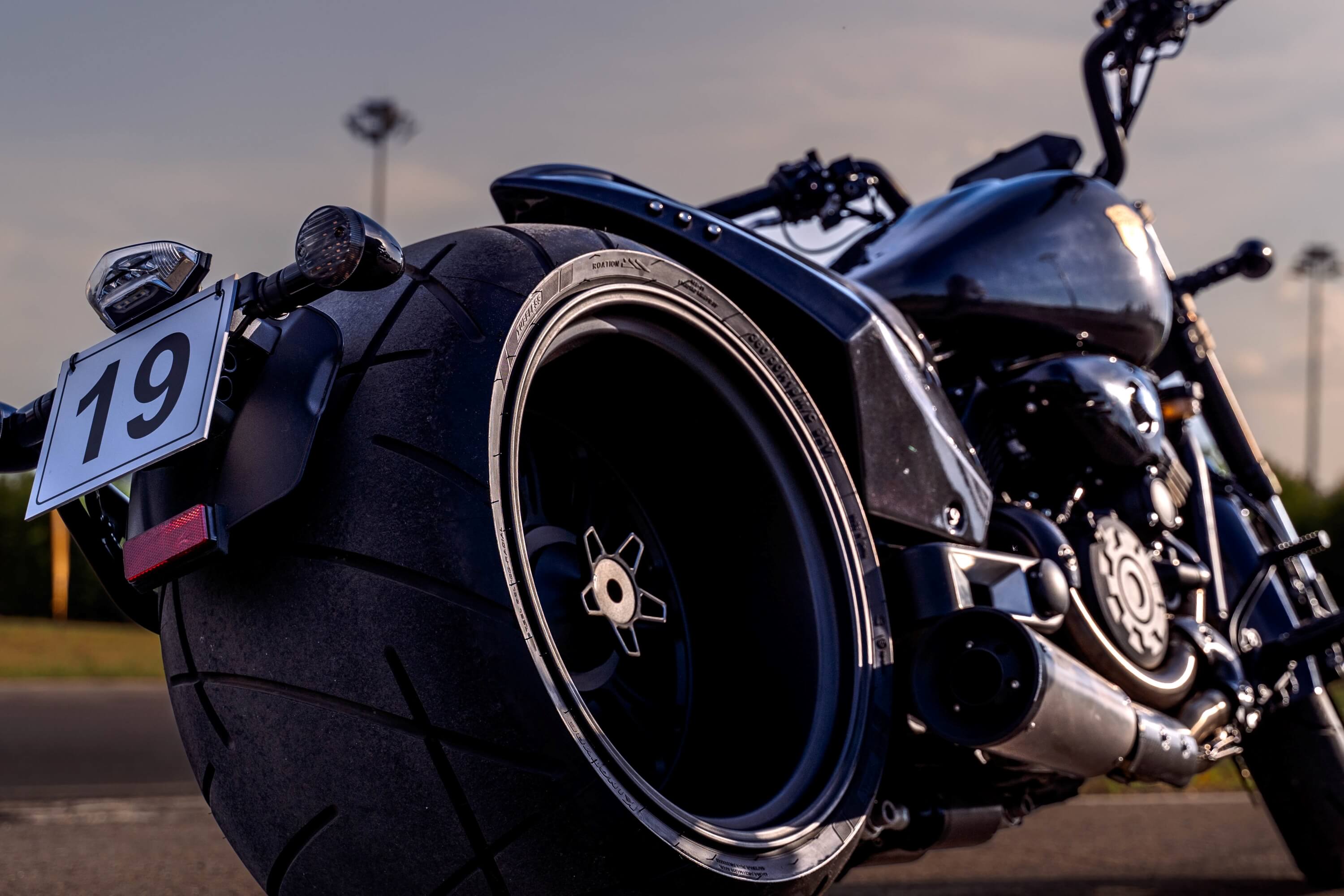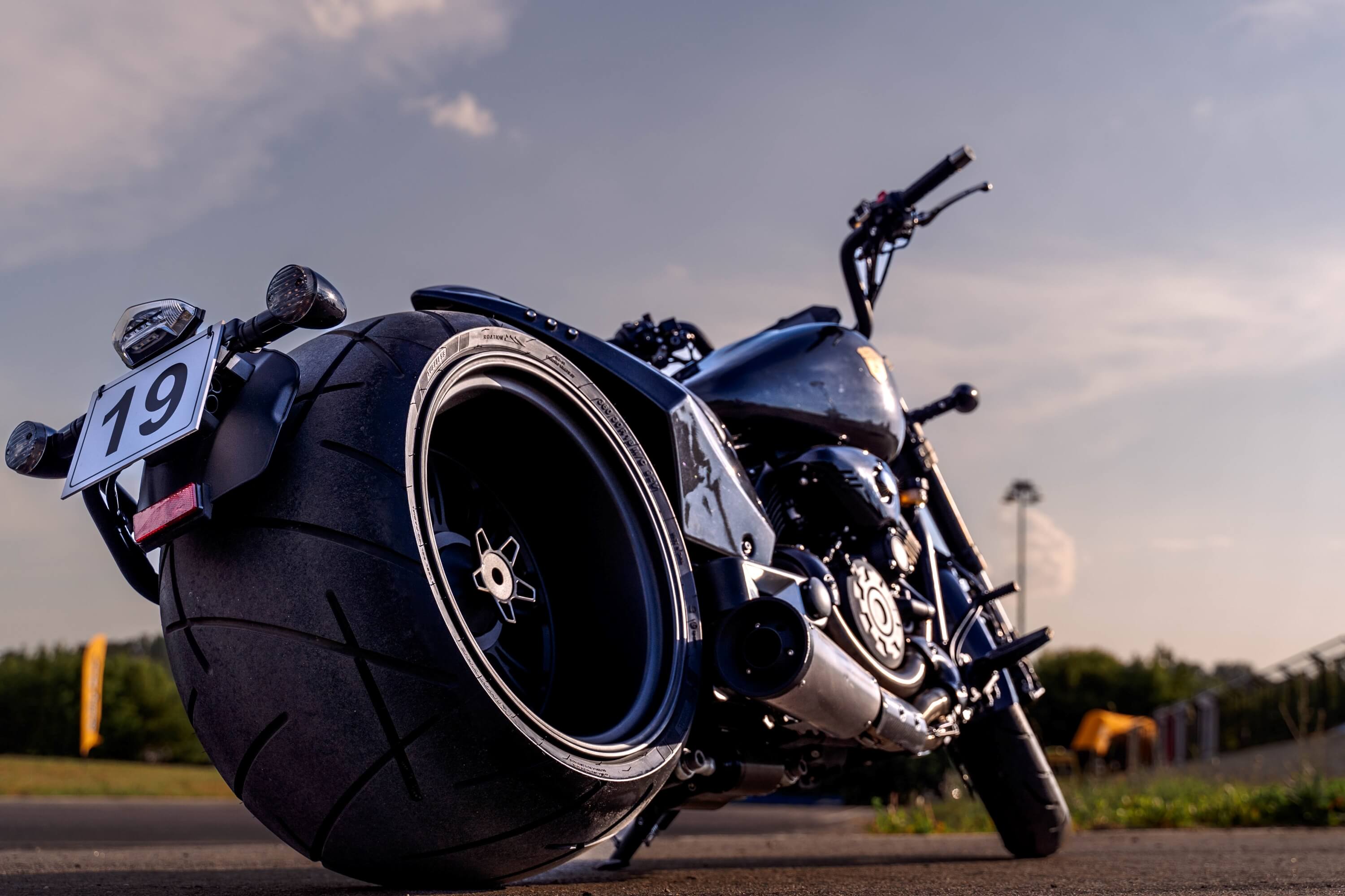 На мотоцикл установлены литые алюминиевые диски диаметром 17 дюймов спереди и 18 дюймов сзади. Ширина передней покрышки – 140 мм, а задней – рекордные 360 мм!
