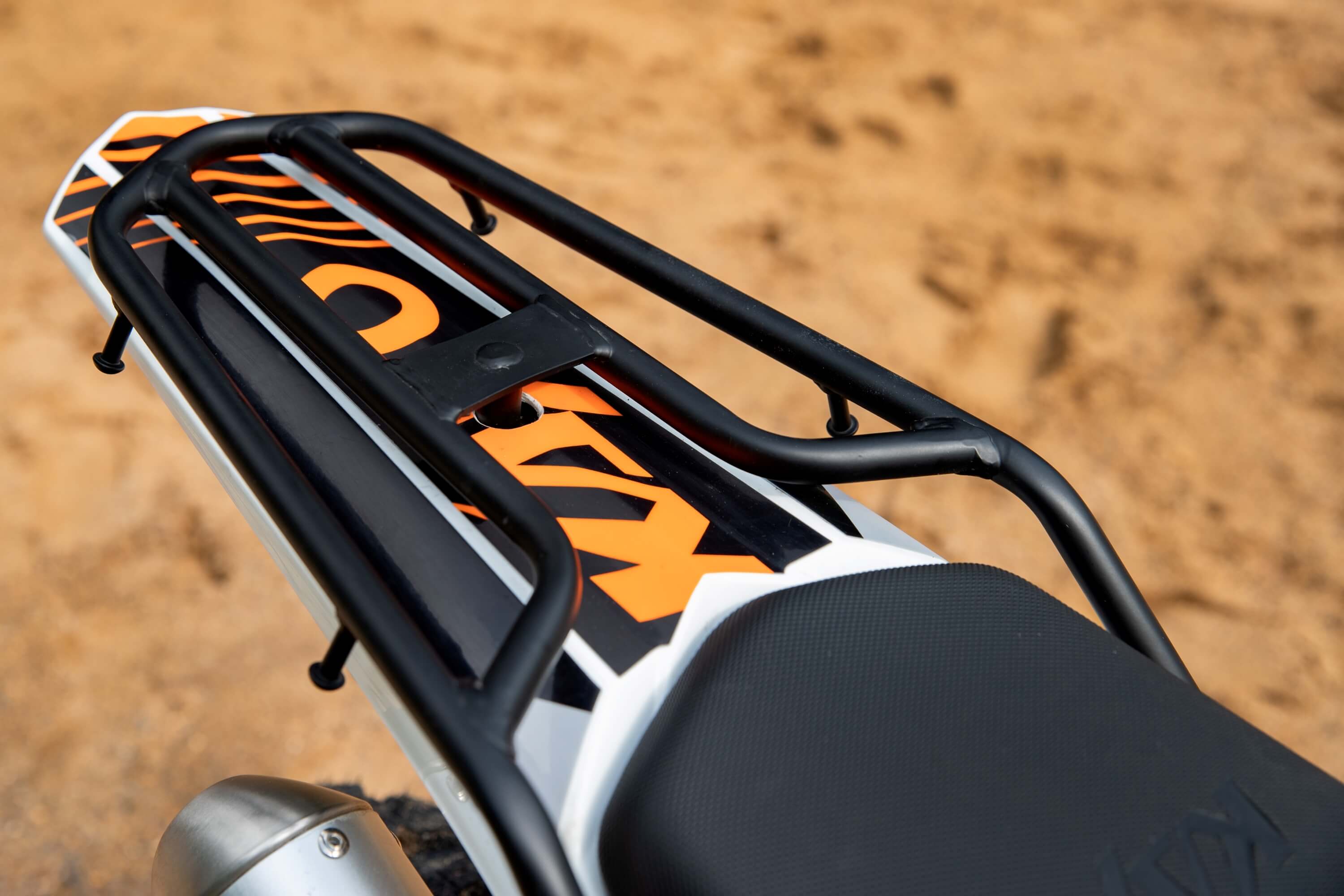 Мотоцикл оборудован счётчиком моточасов, задней багажной платформой, пассажирскими подножками и пластиковой защитой рычагов.