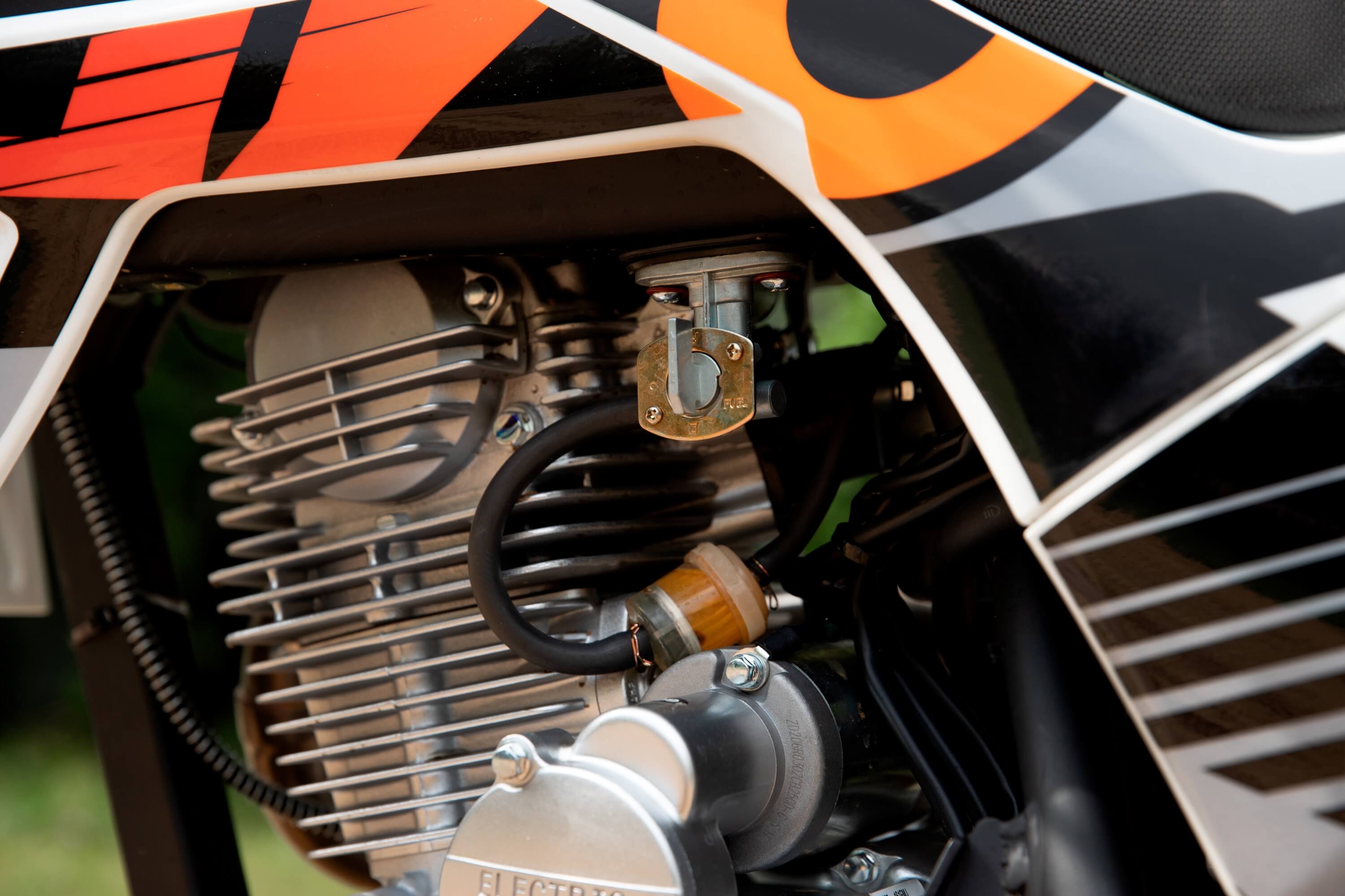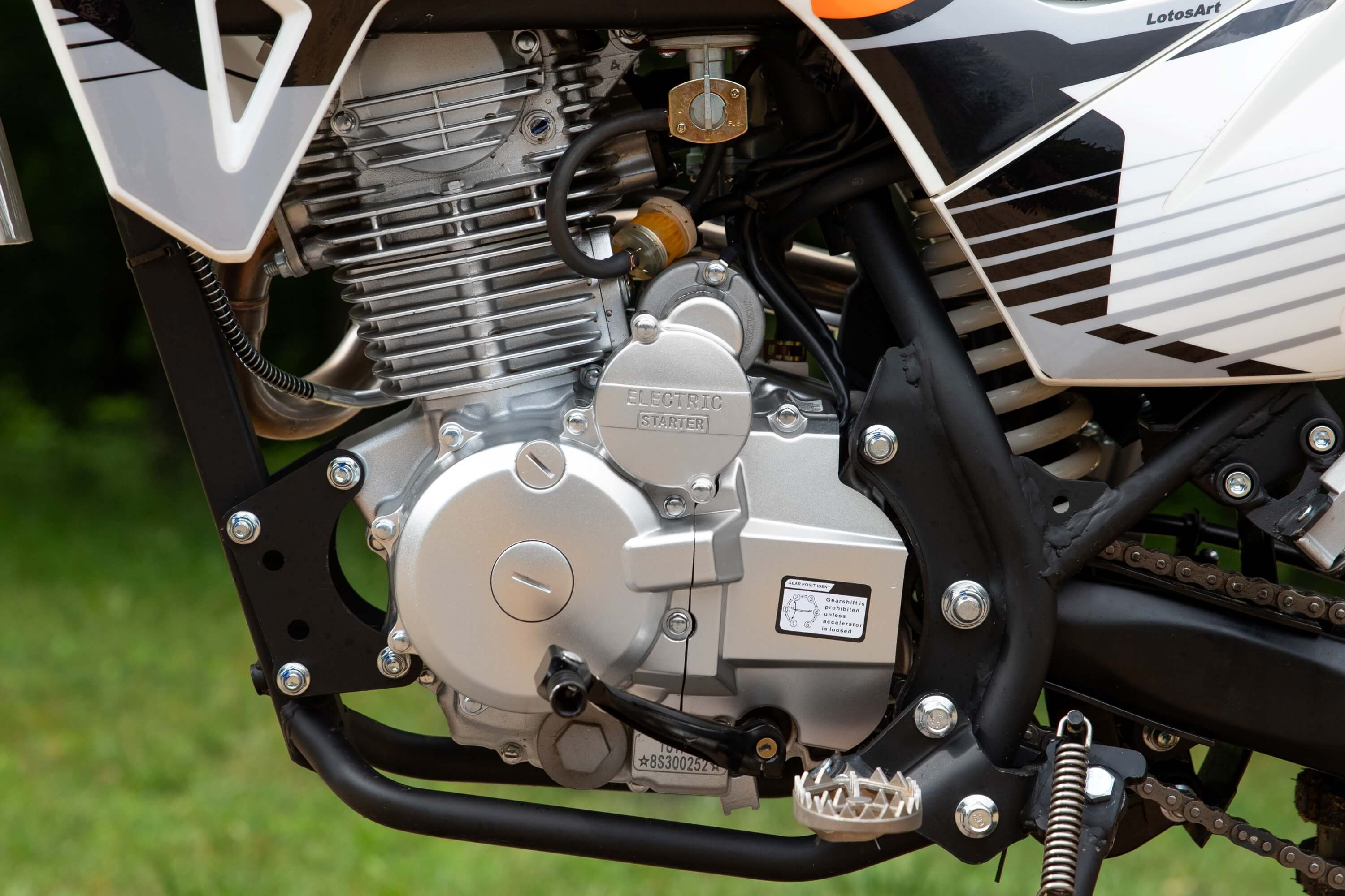 Запуск двигателя осуществляется с помощью электростартера или кикстартера. Зажигание CDI. Ёмкость топливного бака 6 литров.