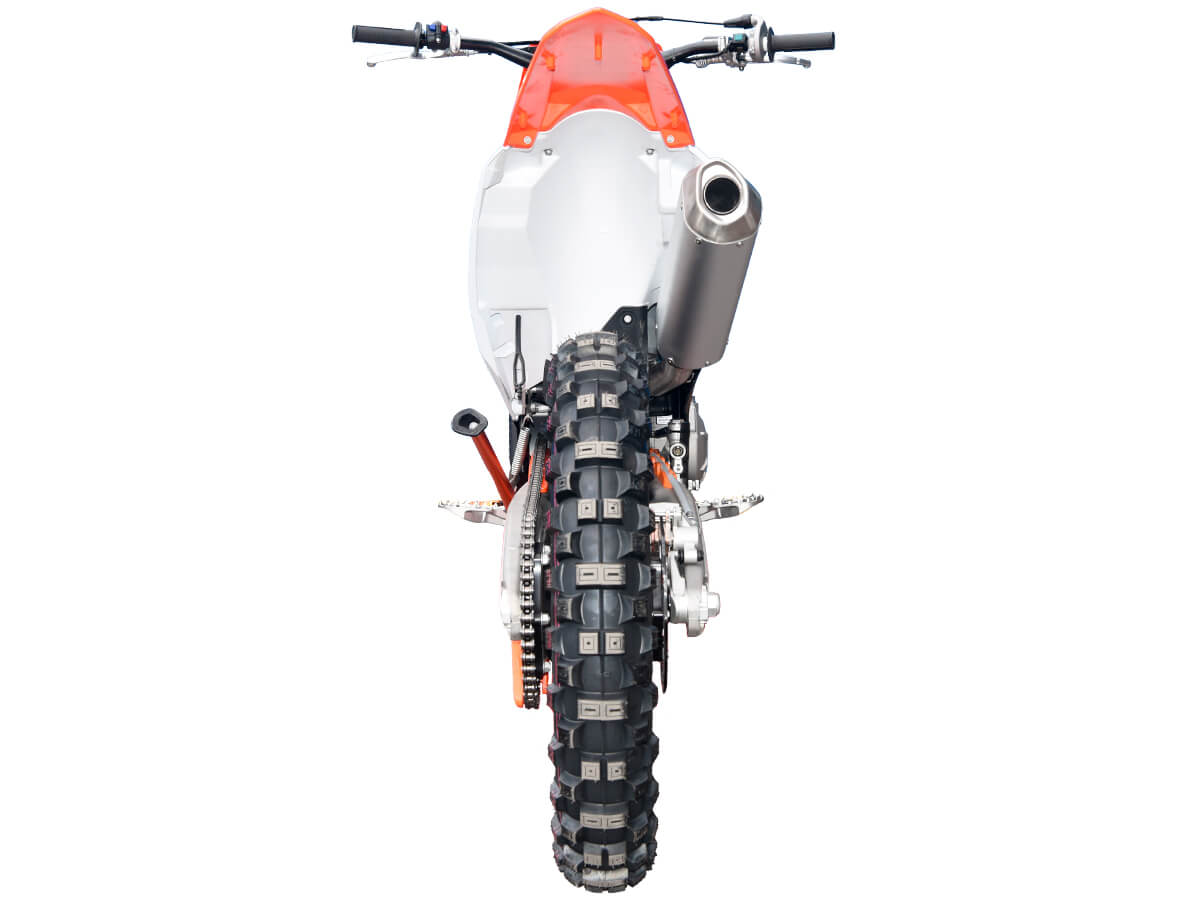250 ТипЭндуро Мощность, л.с.38 ДвигательОдноцилиндровый, 4-тактный, 4-клапанный, с балансирным валом (ZONGSHEN ZS178MM) ОхлаждениеЖидкостное Система подачи топливаКарбюратор FCR 36 Емкость бака, л.7 Передняя подвескаТелескопическая, перевернутого типа, 910 мм, регулируемая Задняя подвескаМоноамортизатор 450 мм, регулируемый Передний тормозДисковый гидравлический Задний тормозДисковый гидравлический Колеса21/18 База, мм1 460 Высота по седлу, мм960 Вес, кг111 -