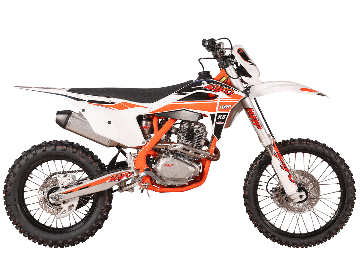 KAYO K6-A 300 MX – новинка в линейке эндуро мотоциклов. Это первый полноразмерный эндуро семейства KAYO с воздушным охлаждением. Создан для тех, кто ищет неприхотливый и выносливый мотоцикл для экстремальных условий офф-роуда и горных трасс.