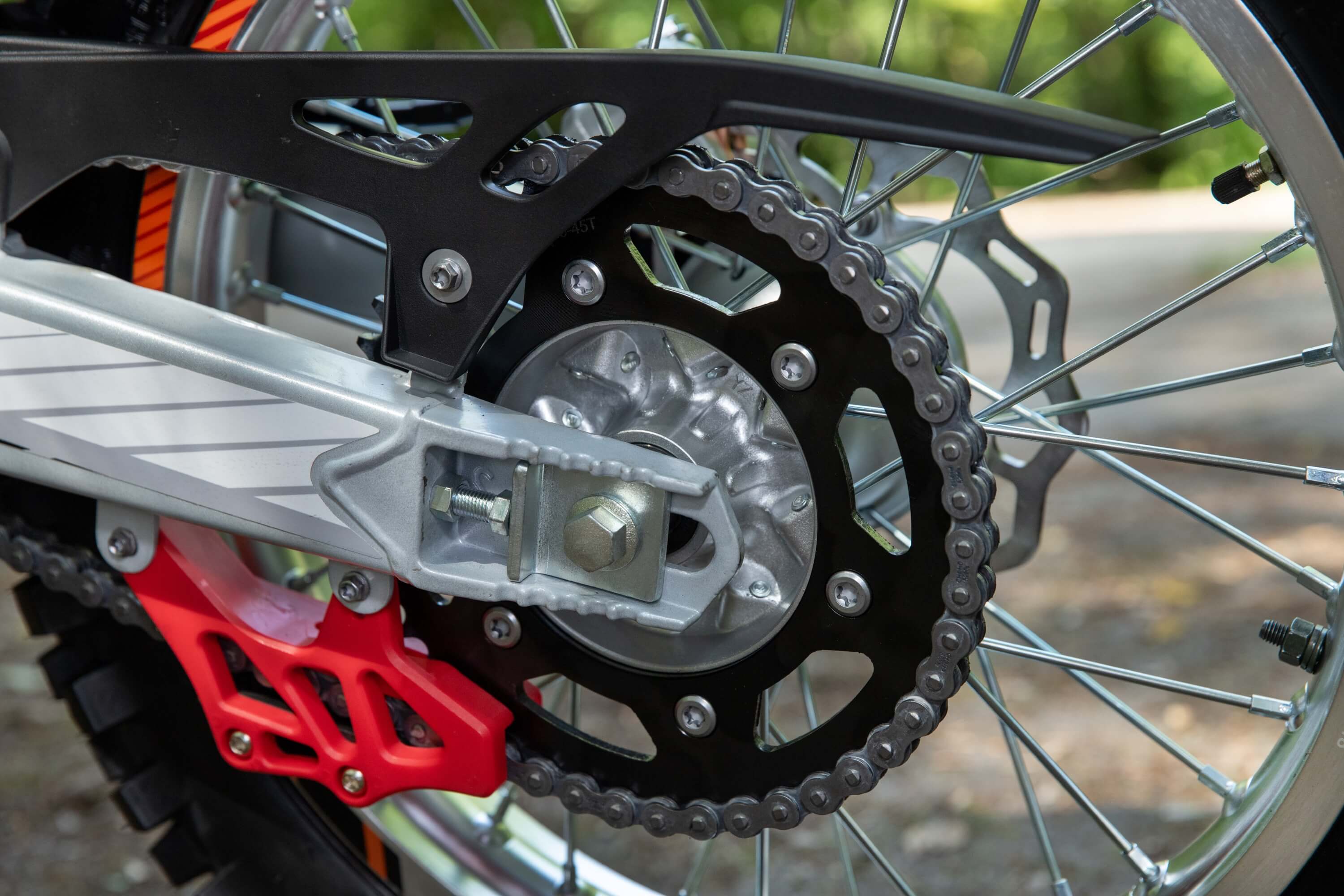 Прочная рама и маятник выполнены из стали. Мотоцикл имеет ПТС и оснащён всем необходимым для поездок по дорогам общего пользования: диодная светотехника (яркая фара, поворотники, стоп-сигнал), звуковой сигнал, цифровая приборная панель, зеркала заднего вида.