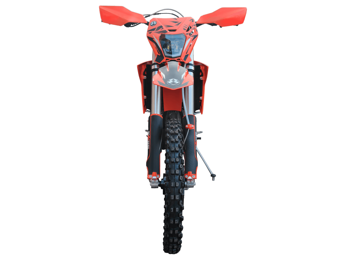 280 ТипЭндуро Мощность, л.с.27 ДвигательОдноцилиндровый, 4-тактный 4- клапанный (NB300/ZS174MN с баланс.валом) ОхлаждениеЖидкостное Система подачи топливаКарбюратор NIBBI PWK34 Емкость бака, л.8л Передняя подвескаТелескопическая, перевернутого типа, HTW, 950 мм, регулируемая Задняя подвескаМоноамортизатор 480 мм, регулируемый (сжатие/отбой) СтартерЭлектрический и кикстартер Передний тормозДисковый гидравлический Задний тормозДисковый гидравлический Колеса21/18 Длина*Ширина*Высота, мм2150×840×1260 База, мм1 445 Высота по седлу, мм950 Вес, кг125 Клиренс, мм315 СцеплениеМеханическое ПТСНЕТ -