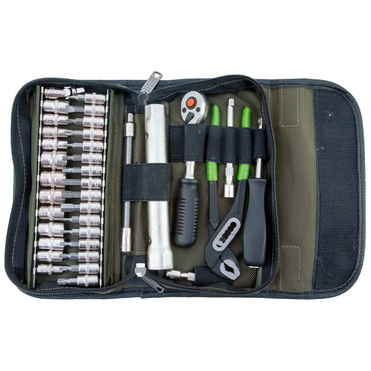 Купить набор головок 1/4" с инструментом в фирменной сумке 37 предметов по выгодной цене можно онлайн на нашем сайте или в одном из салонов сети Роллинг Мото. -