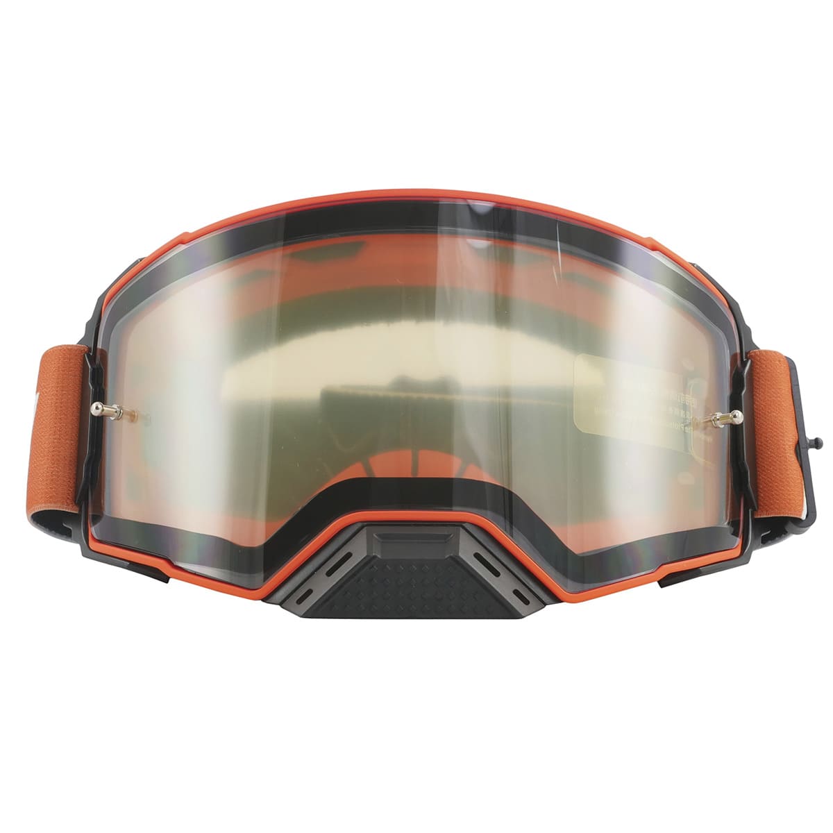 Двойная структура и система вентиляции предотвращают запотевание линзы при самых интенсивных нагрузках и экстремальном перепаде температур. Прочная рама не только защищает глаза, но и устойчива к ударам и вибрациям. Резинка шириной 48 мм с силиконовым напылением надёжно удерживает очки на шлеме. Уплотнитель обеспечивает эффективный отвод влаги и идеальную посадку очков на лицо. Корпус очков адаптирован ко всем типам форм и размеров мотошлемов.