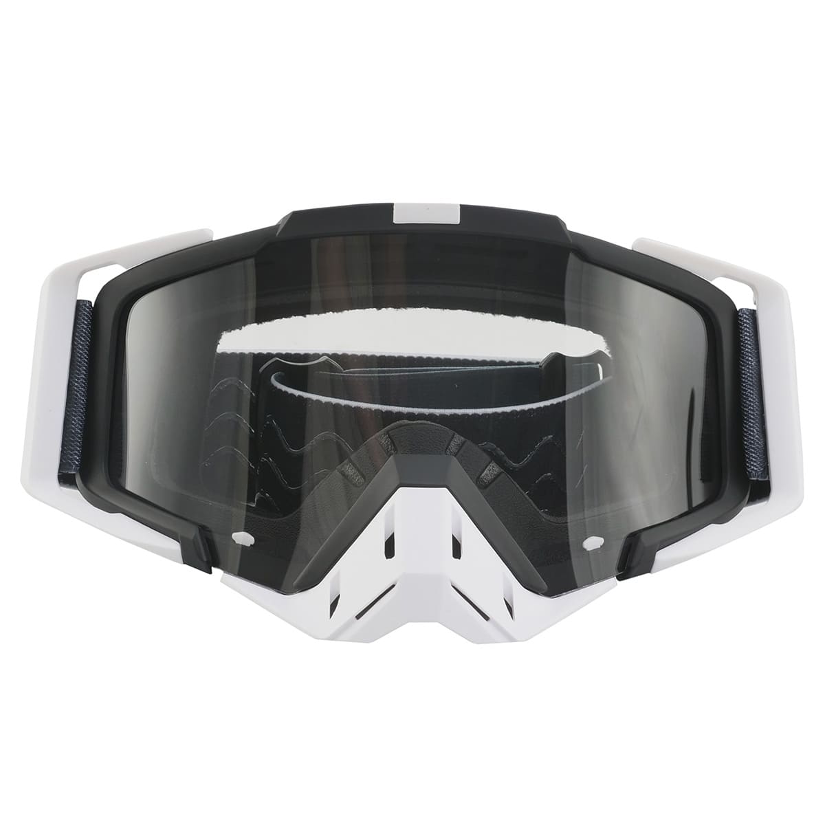 Прочная рама не только защищает глаза, но и устойчива к ударам и вибрациям. Резинка шириной 48 мм с силиконовым напылением надёжно удерживает очки на шлеме. Развитая система вентиляции предотвращает запотевание линз и обеспечивает комфортную носку даже во время интенсивной езды. Уплотнитель обеспечивает эффективный отвод влаги и идеальную посадку очков на лицо. Корпус очков адаптирован ко всем типам форм и размеров мотошлемов.