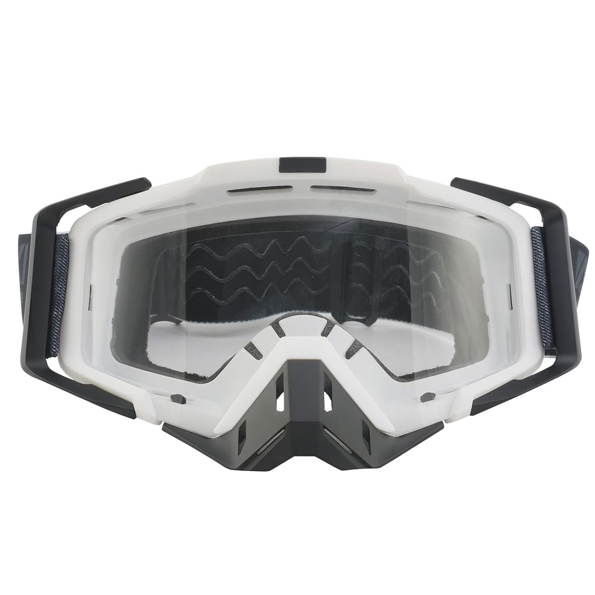 Прочная рама не только защищает глаза, но и устойчива к ударам и вибрациям. Резинка шириной 48 мм с силиконовым напылением надёжно удерживает очки на шлеме. Развитая система вентиляции предотвращает запотевание линз и обеспечивает комфортную носку даже во время интенсивной езды. Уплотнитель обеспечивает эффективный отвод влаги и идеальную посадку очков на лицо. Корпус очков адаптирован ко всем типам форм и размеров мотошлемов.