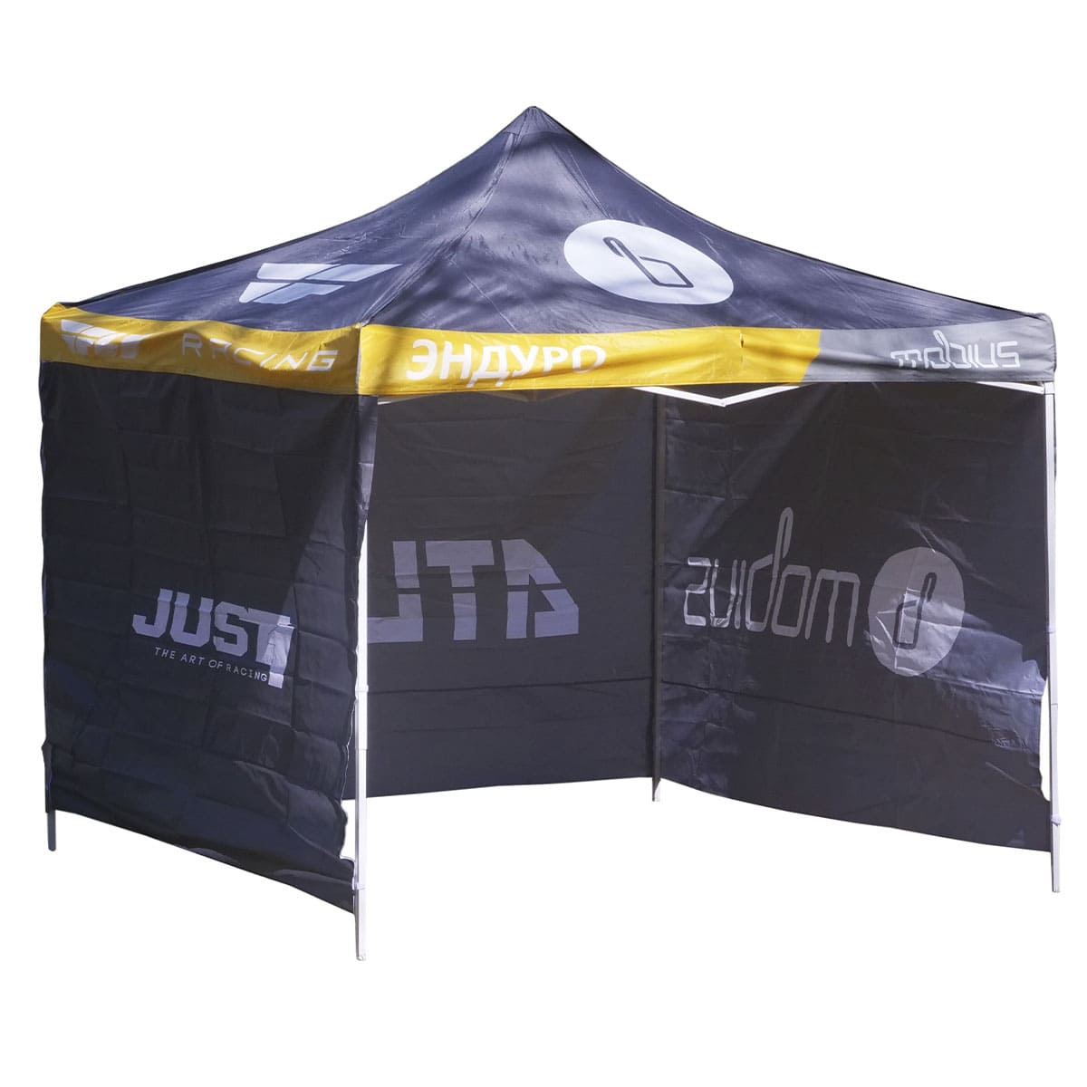 Палатка Off-road – идеальное решение для мероприятий на открытом воздухе. Дизайн выполнен в чёрном цвете с крупными привлекающими внимание логотипами. Палатка легко собирается и разбирается, а в сложенном виде занимает мало места.
