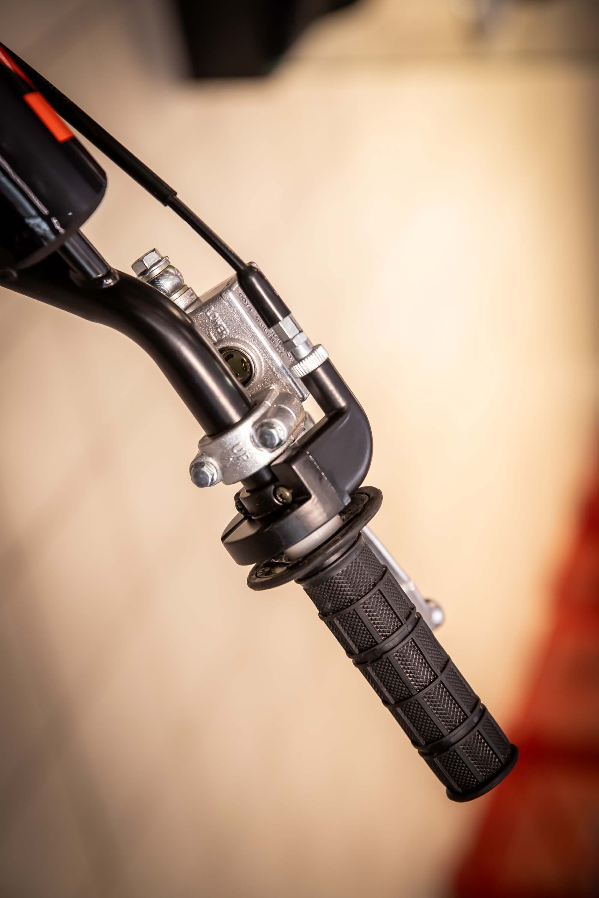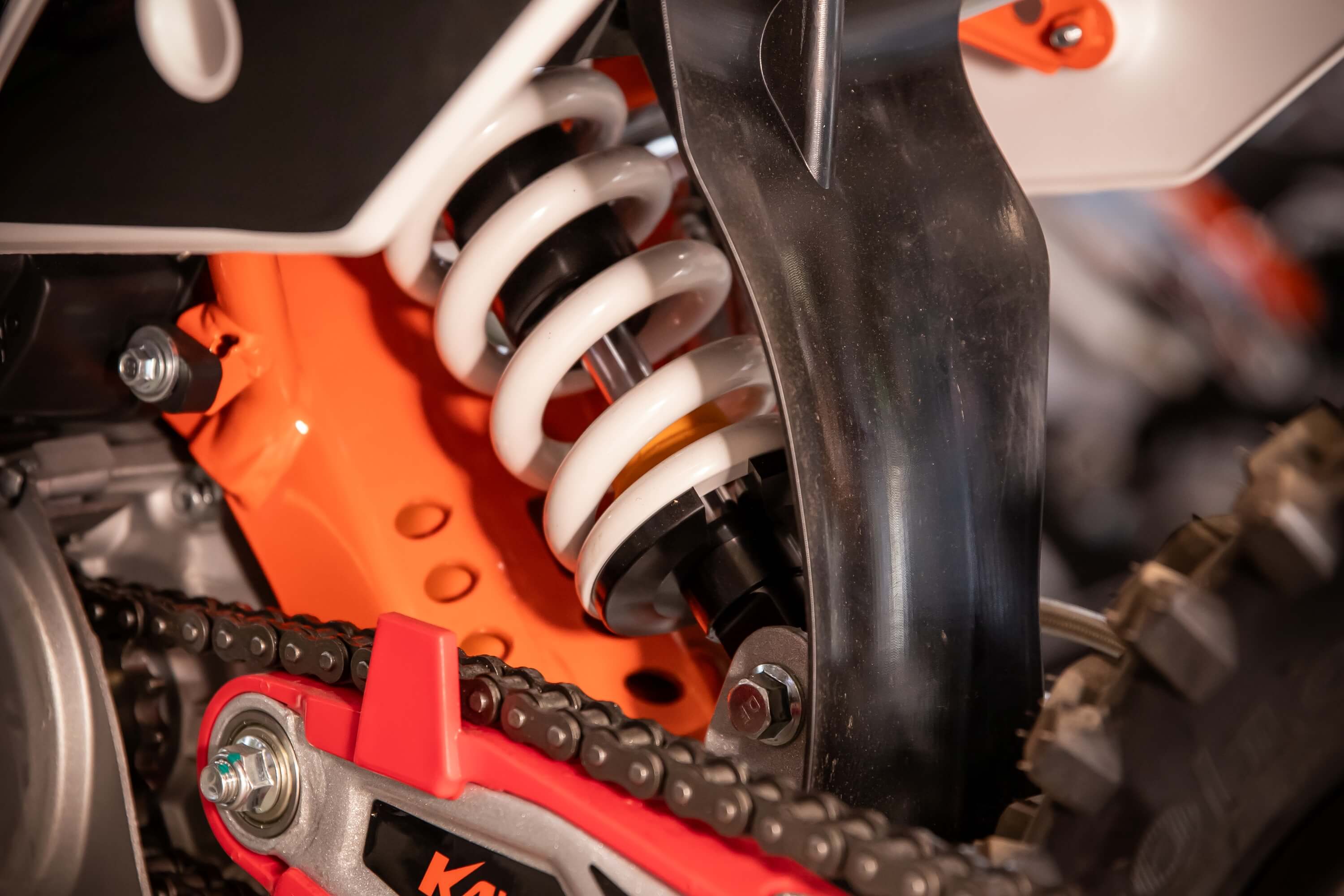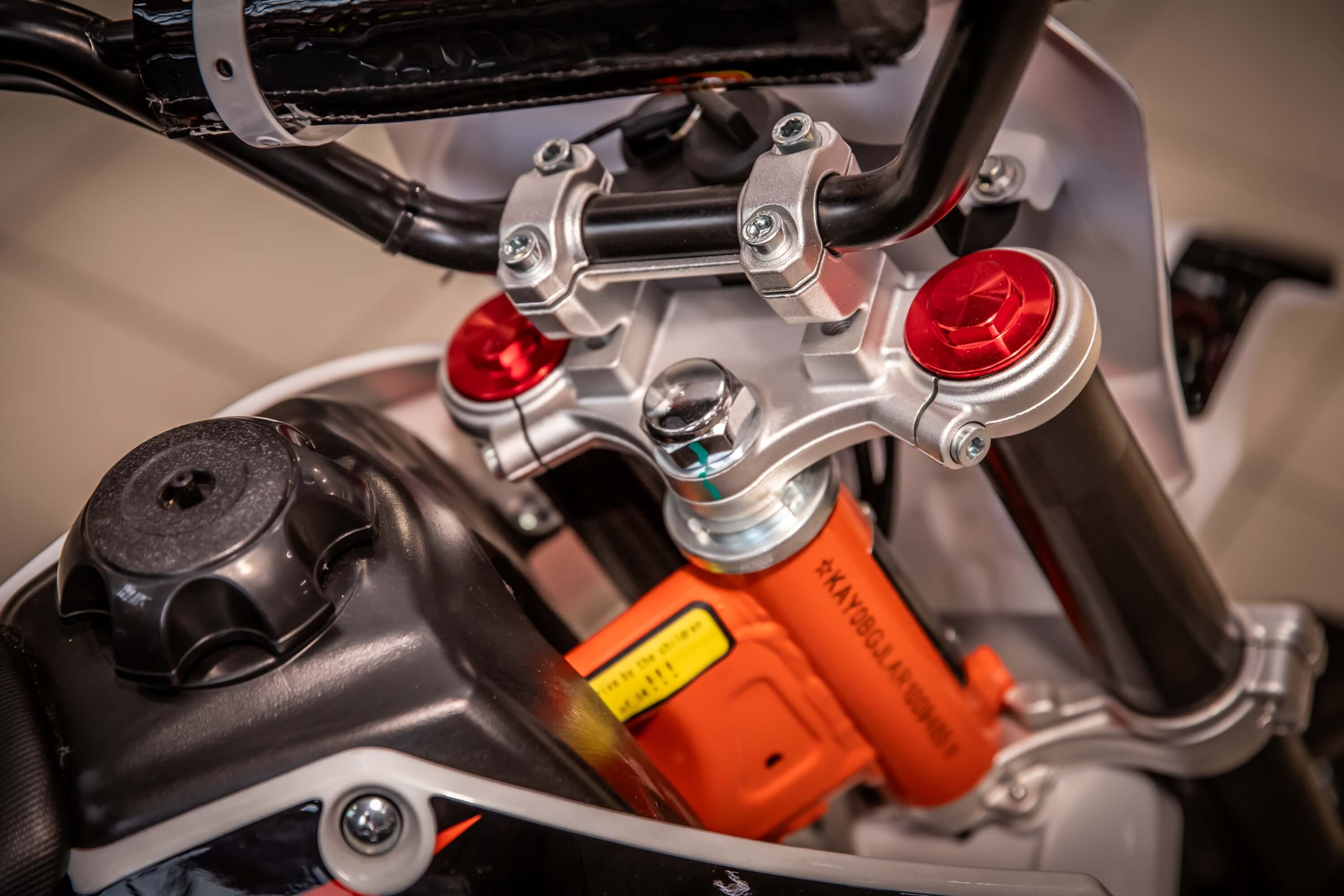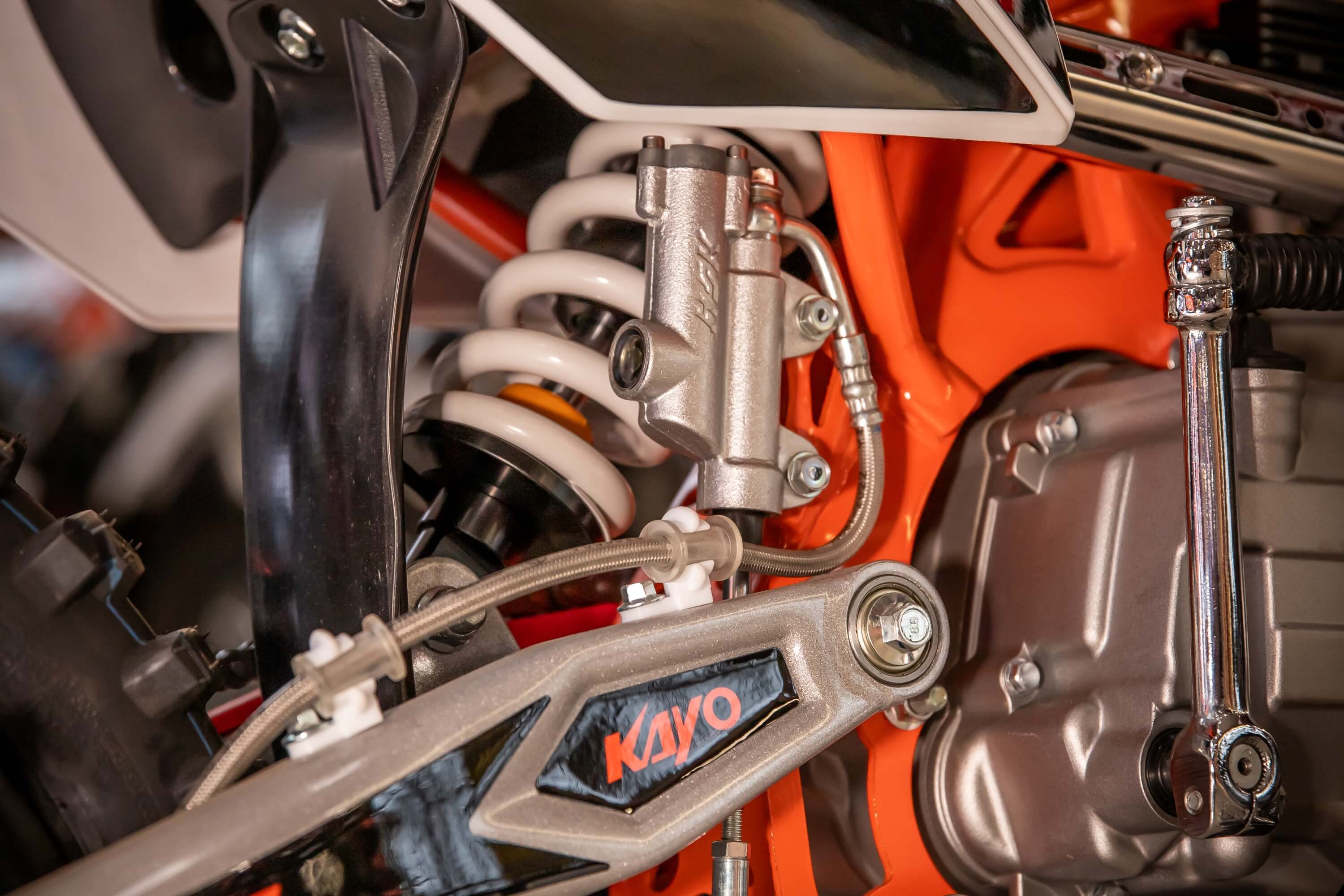 Аппарат имеет вес всего 65 кг и большой клиренс 265 мм. Рама и пластик являются собственной разработкой производителя. Усиленная рама из хроммолибденового сплава и выносливая подвеска позволяют легко проходить сложные трассы и приземления после прыжков. Передняя подвеска представлена телескопической вилкой длиной 660 мм, а сзади используется моноамортизатор 310 мм.