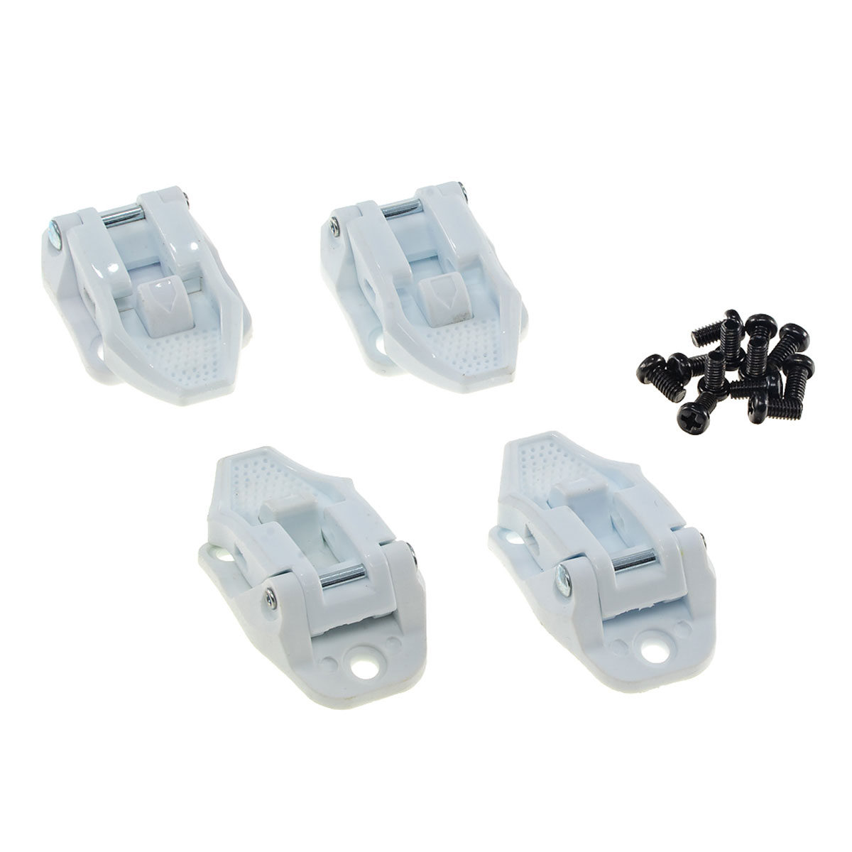 В комплект входит четыре пряжки, выполненных в белом цвете и набор крепёжных стальных винтов.