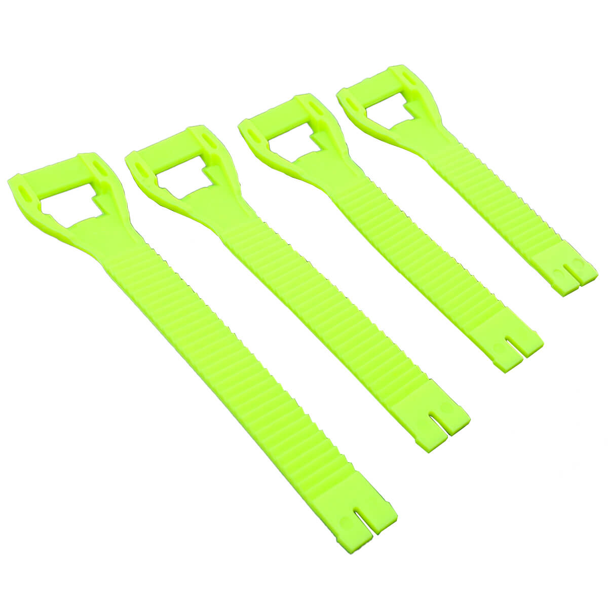 В комплект входит четыре ремешка длиной 18 см, 23 см, 27 см и 33 см. Ремешки выполнены в ярко-жёлтом флюоресцентном цвете.