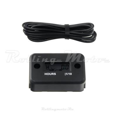 Полностью водонепроницаемый счетчик фиксируется при помощи винтов или хомутов стяжки в удобном для снятия показаний месте. Конец комплектного кабеля несколько раз (4-5 витков) наматывается вокруг провода свечи зажигания и закрепляется стяжкой или любым другим способом. Другой конец кабеля закрепляется в пазу задней панели прибора. LCD-дисплей счетчика отображает часы работы двигателя накопительным методом с момента установки прибора. Частота обновления показаний – раз в шесть минут (1/10 часа). Счетчик нельзя обнулить, максимальная разрядность дисплея составляет 99999 часов.