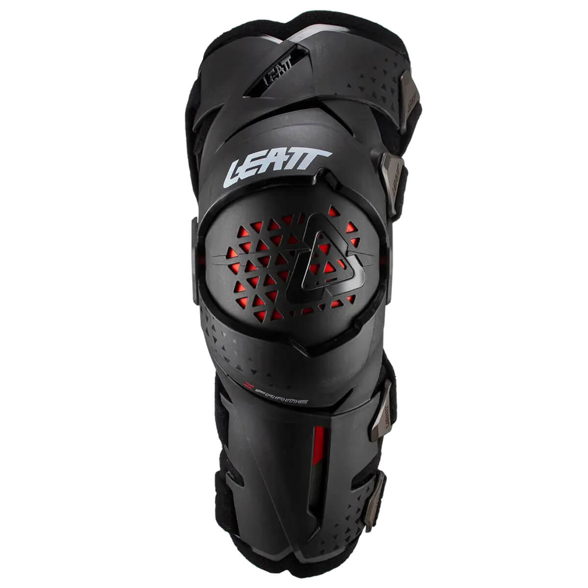 Надёжная фиксация на ноге обеспечивается за счёт четырёх ремней на липучках, которые удобно подгоняются под габариты любого райдера. Имеет сменные ограничители гиперэкстензии сустава до 10°, 15°, 20° и 25° для снижения травм ACL, а также фиксированные сгибательные стопоры для уменьшения травмы мениска. Брейсы LEATT Knee Brace Z-Frame сертифицированы не только как защитная экипировка, но и как медицинское оборудование.