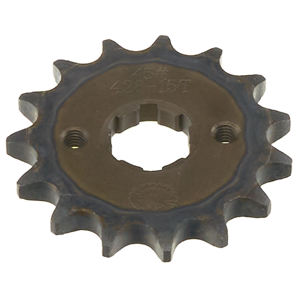 Имеет 15 зубьев. Подходит для цепей с маркировкой 428. Все измерения указаны на фотографиях в карточке товара.