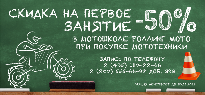 Специально для вас мы запустили акцию: с 1 по 30 ноября, при покупке мототехники в Роллинг Мото — первое тренировочное занятие в мотошколе за полцены! Это отличная возможность для тех, кто только начинает свой путь в мире мотоспорта и хочет освоить все нюансы, а также для тех, кто хочет отточить свои навыки.