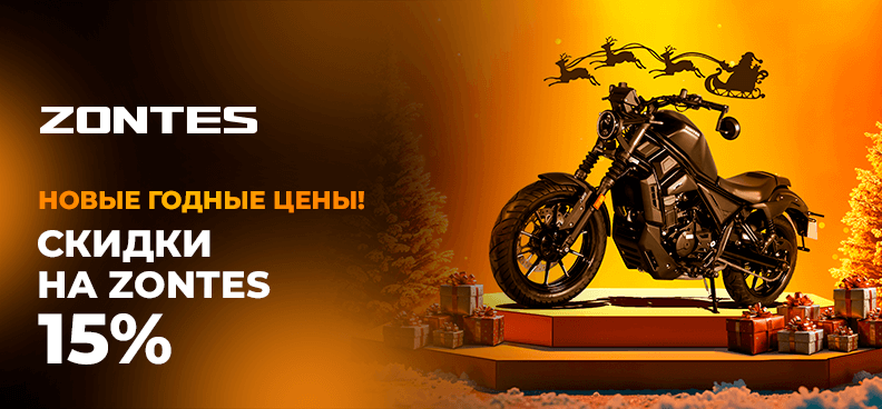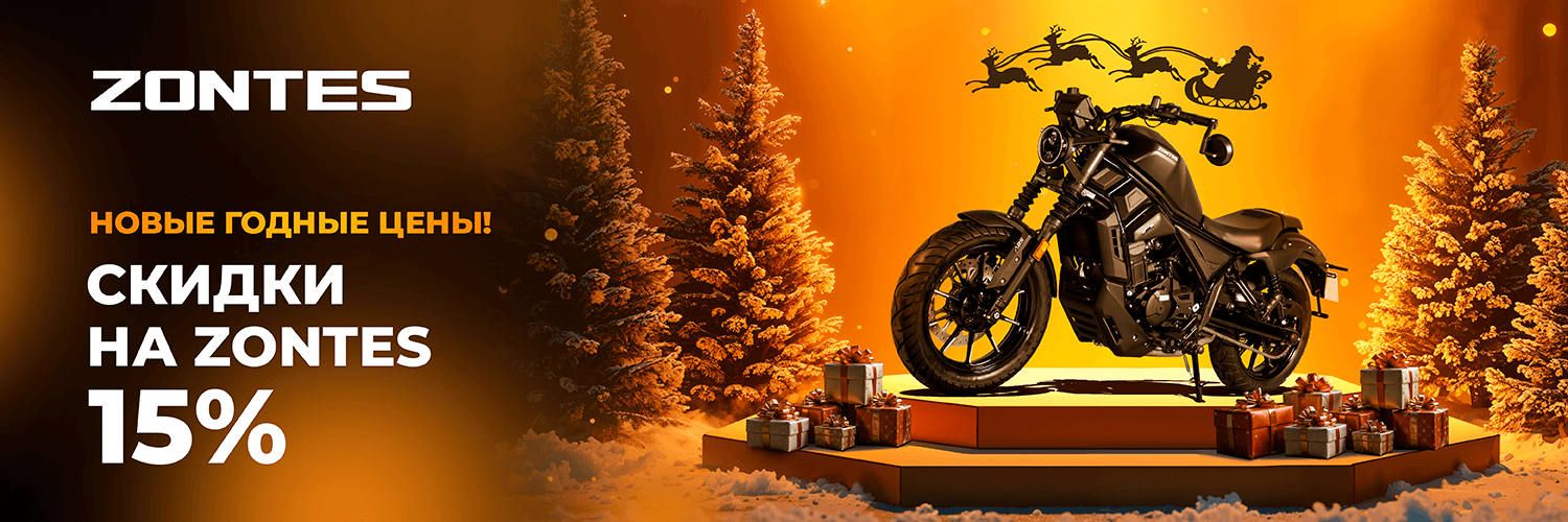 С 17 декабря по 11 января на мотоциклы с двигателями 200 и 350 см³ действует скидка 15%.